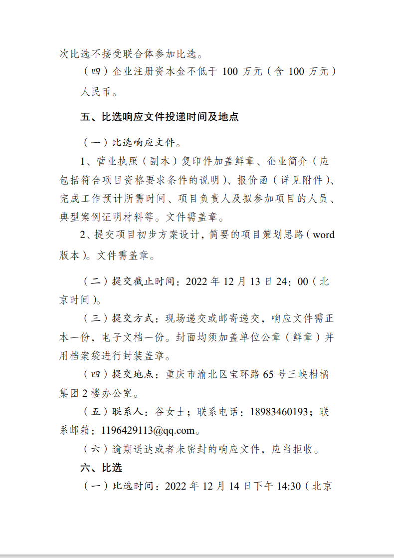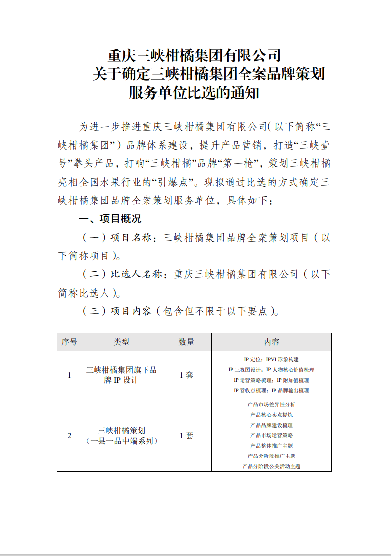 重慶三峽柑橘集團(tuán)有限公司關(guān)于確定三峽柑橘集團(tuán)全案品牌策劃服務(wù)單位比選的通知